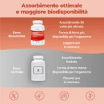 Il ferro liposomiale è veicolato da fosfolipidi che proteggono il minerale fino all’intestino, garantendo un’assimilazione superiore rispetto alle forme tradizionali. La Vitamina A favorisce il normale metabolismo del ferro, mentre la B6 sostiene la formazione dei globuli rossi per un apporto nutrizionale equilibrato.