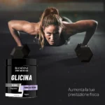 La glicina supporta la sintesi del collagene per la salute delle articolazioni, contribuisce alla produzione di antiossidanti come il glutatione per combattere lo stress ossidativo e favorisce un sonno più profondo e rigenerante, migliorando anche il rilassamento e il benessere mentale.