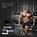La glicina supporta la sintesi del collagene per la salute delle articolazioni, contribuisce alla produzione di antiossidanti come il glutatione per combattere lo stress ossidativo e favorisce un sonno più profondo e rigenerante, migliorando anche il rilassamento e il benessere mentale.